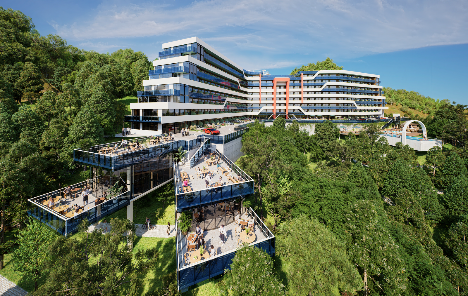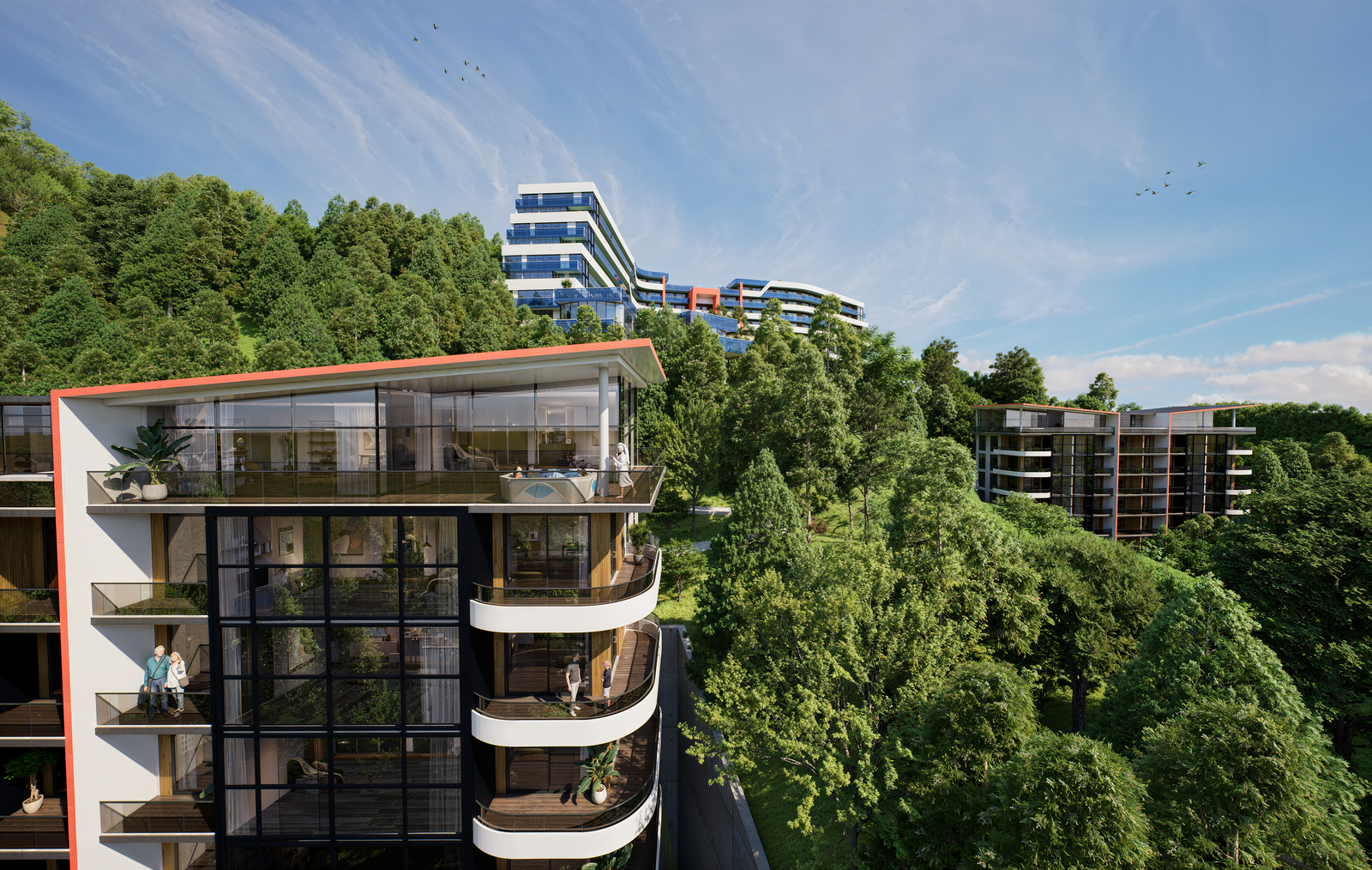 კომპლექსი განთავსებულია გამწვანებულ ტერიტორიაზე, სადაც ბუნებრივი ლანდშაფტი და არქიტექტურა ერთმანეთთან ჰარმონიულ თანხვედრაშია. სივრცეში გაერთიანებულია მთისა და ზღვის უნიკალური ხედი, რაც პროექტს განსაკუთრებულ ღირებულებას სძენს.